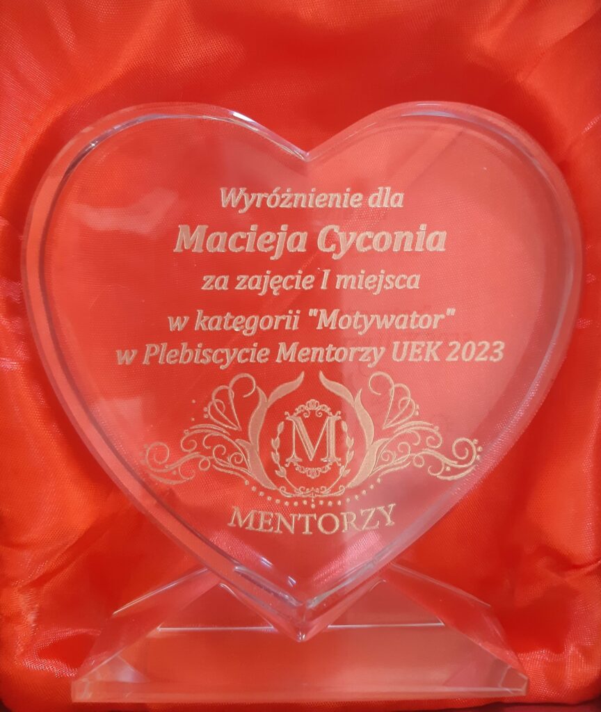 Pan dr Maciej Cycoń zwycięzcą w plebiscycie Mentorzy UEK 2023! 2023-03-08 Pan dr Maciej Cycoń został zwycięzcą w studenckim plebiscycie „Mentorzy – Plebiscyt na najlepszego prowadzącego 2023” w kategorii „Motywator”! Serdecznie gratulujemy i życzymy dalszy sukcesów dydaktycznych! Poprzedni Życzenia z okazji Dnia Kobiet Nowsze Z cyklu: Jak to zrobiłem? – spotkanie z Wiesławem Cholewą Zobacz również VI edycja konkursu wiedzy o współczesnej bankowości – Bankier UEK 2024 – podsumowanie 2024-01-21 Konkurs na pracę magisterską i licencjacką poświęconą tematyce finansów publicznych 2024 2024-03-27 Konkursu o Nagrodę Prezesa NBP za najlepszą pracę magisterską – XV edycja 2023-06-27