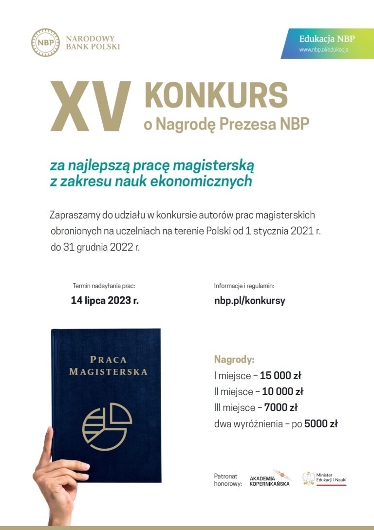 Konkursu o Nagrodę Prezesa NBP za najlepszą pracę magisterską – XV edycja