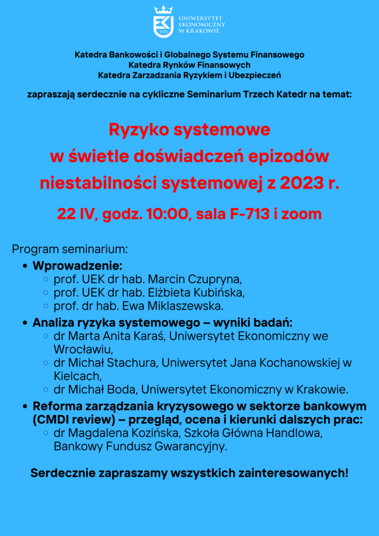 Ryzyko systemowe w świetle doświadczeń epizodów niestabilności systemowej z 2023 r. 2024-04-12 Poprzedni Studentka IF laureatką stypendium Ministra Nauki na rok akademicki 2023/2024 Nowsze Graduacja kierunku Audyt Finansowy 2024 Zobacz również Akademia TFI PZU 2023-10-17 Pani Paulina Zagórska Studentka kierunku Rynki finansowe laureatką stypendium Ministra Nauki przyznawanego za znaczące osiągnięcia 2024-05-09 Zapraszamy na seminaria naukowe – 15 listopada 2022 roku 2022-11-14