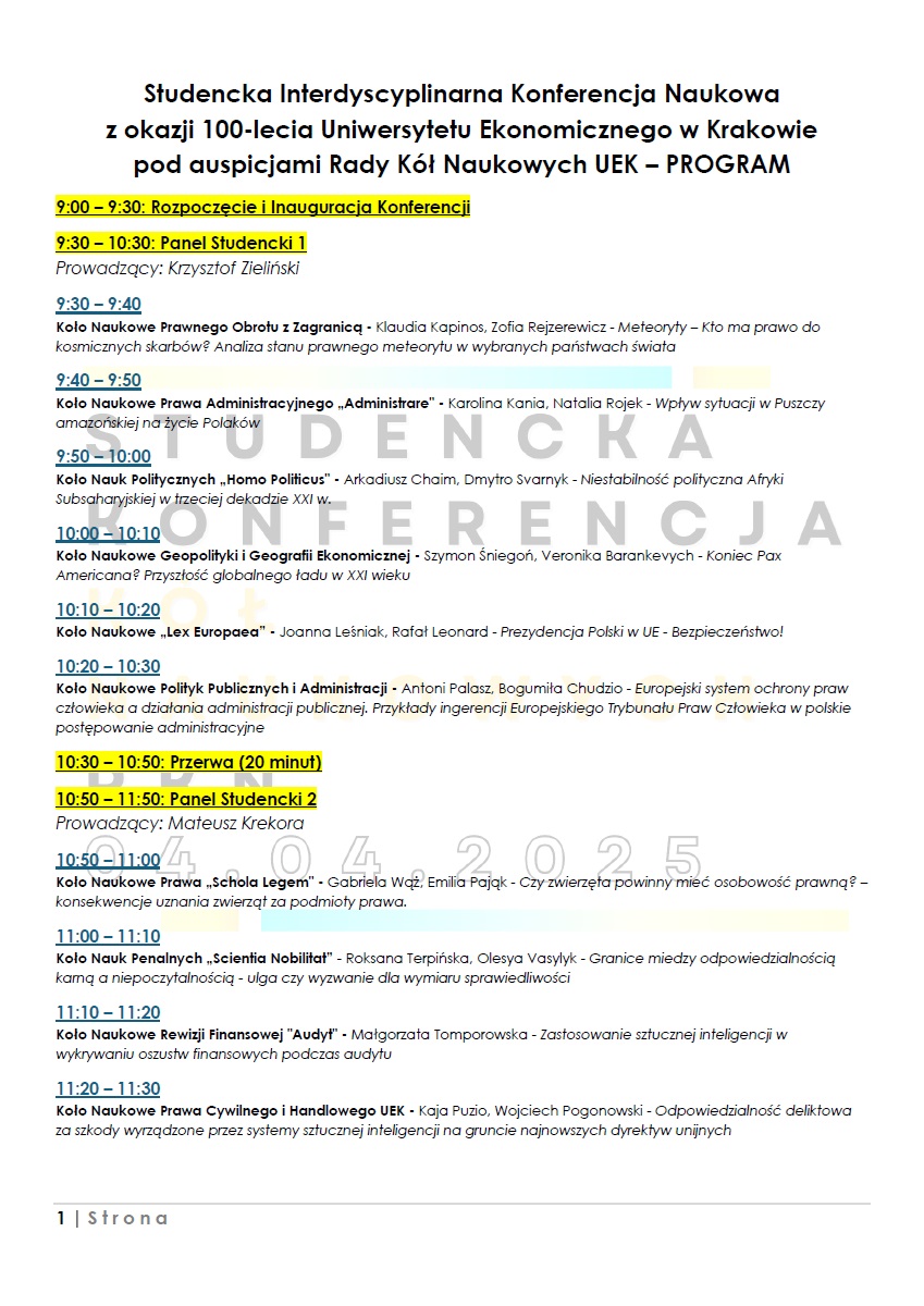 Serdecznie zapraszamy do udziału w Interdyscyplinarnej Konferencji Naukowej z okazji 100-lecia Uniwersytetu Ekonomicznego w Krakowie pod auspicjami Rady Kół Naukowych UEK.