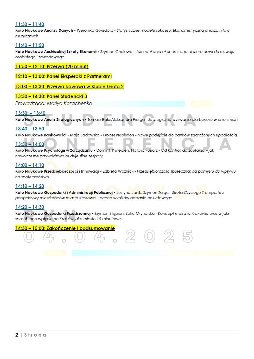 Wydarzenie odbędzie się dnia 4 kwietnia 2025 r. w godzinach 09:00 – 15:00, w Starej Auli znajdującej się w Budynku Głównym Uniwersytetu. Konferencja będzie doskonałą okazją do wysłuchania inspirujących prelekcji przygotowanych przez poszczególne Koła Naukowe, uczestnictwa w dyskusjach panelowych oraz wymiany doświadczeń z przedstawicielami różnych dyscyplin naukowych. W ramach wydarzenia odbędzie się także panel ekspercki, w trakcie którego praktycy biznesu omówią kluczowe wyzwania stojące przed współczesną gospodarką i szkolnictwem wyższym.